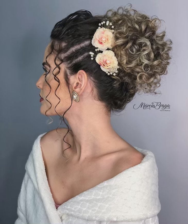 Posicione a trança próxima ao coque e coloque grampos por dentro para fixá-la. Se preferir, você pode usar um spray para dar um efeito mais molhado ao penteado.