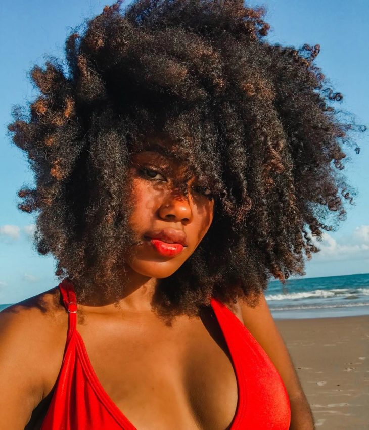 A Marijane Mendes fez uma simulação de como costuma cortar o seu cabelo crespo em camadas, deixando ele com um efeito arredondado e com bastante volume.