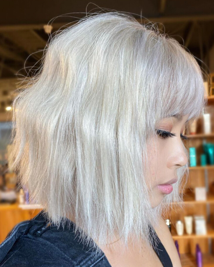 Além disso, esse corte oferece um efeito visual capaz de afinar o rostos redondos, já que a parte da frente do cabelo estará mais alongada do que a parte de trás. Ainda, com o auxílio de um corte em camadas, o long bob curto pode ajudar a dar mais volume aos rostos finos e em formato de coração.