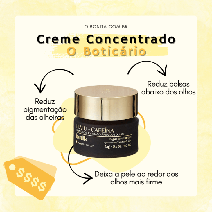 Com ajuda dos benefícios da cafeína, o produto reduz e uniformiza a pigmentação da derme, clareando manchas escuras e diminuindo olheiras e bolsas. Além disso, o produto é bem democrático, porque combina com os diversos tipos de pele.