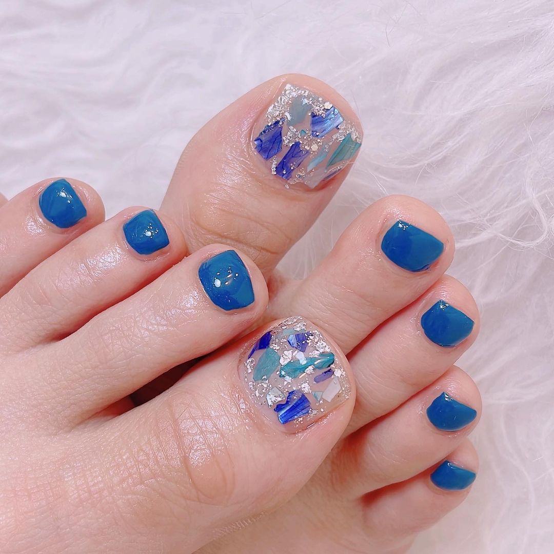 Se você prefere as cores frias, que tal unhas decoradas em azul? A cor representa a serenidade, calma e tranquilidade. Veja como criar decorações sofisticadas para as unhas dos pés com os diferentes tons de azul, do céu ao royal: